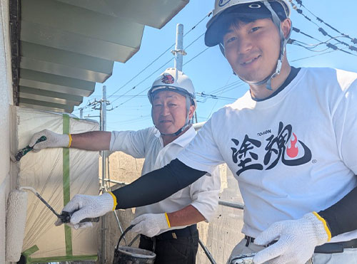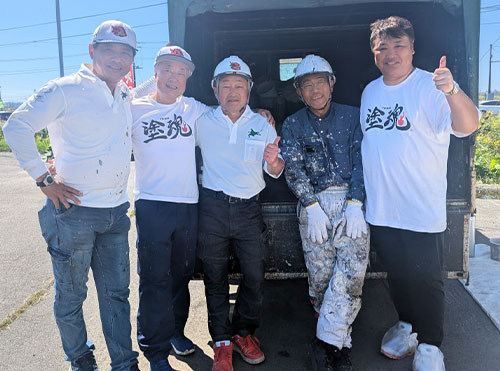 苫小牧ニシムラ塗装さんの元で働いている息子さんと一緒にボランティア。ニシムラ塗装さんも塗魂ペインターズのメンバーです。